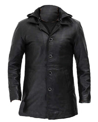 Elite Devine Men's Black Leather Jacket with Hood - XS / Black