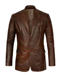 Elite Men's Distressed Brown Leather Blazer - XS / Distressed Brown