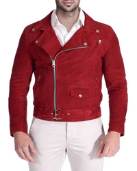 Mens Burgendy Red Suede Leather Jacket - X-Small
