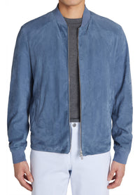 Mens Zenith Blue Bomber Suede Leather Jacket - X-Small / Zenith Blue