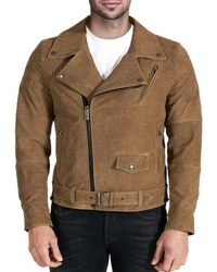 Mens Perfecto Brown Suede Leather Jacket Sale