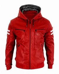 Elite Men’s Biker Red Leather Bomber Hooded Jacket - XS / Red