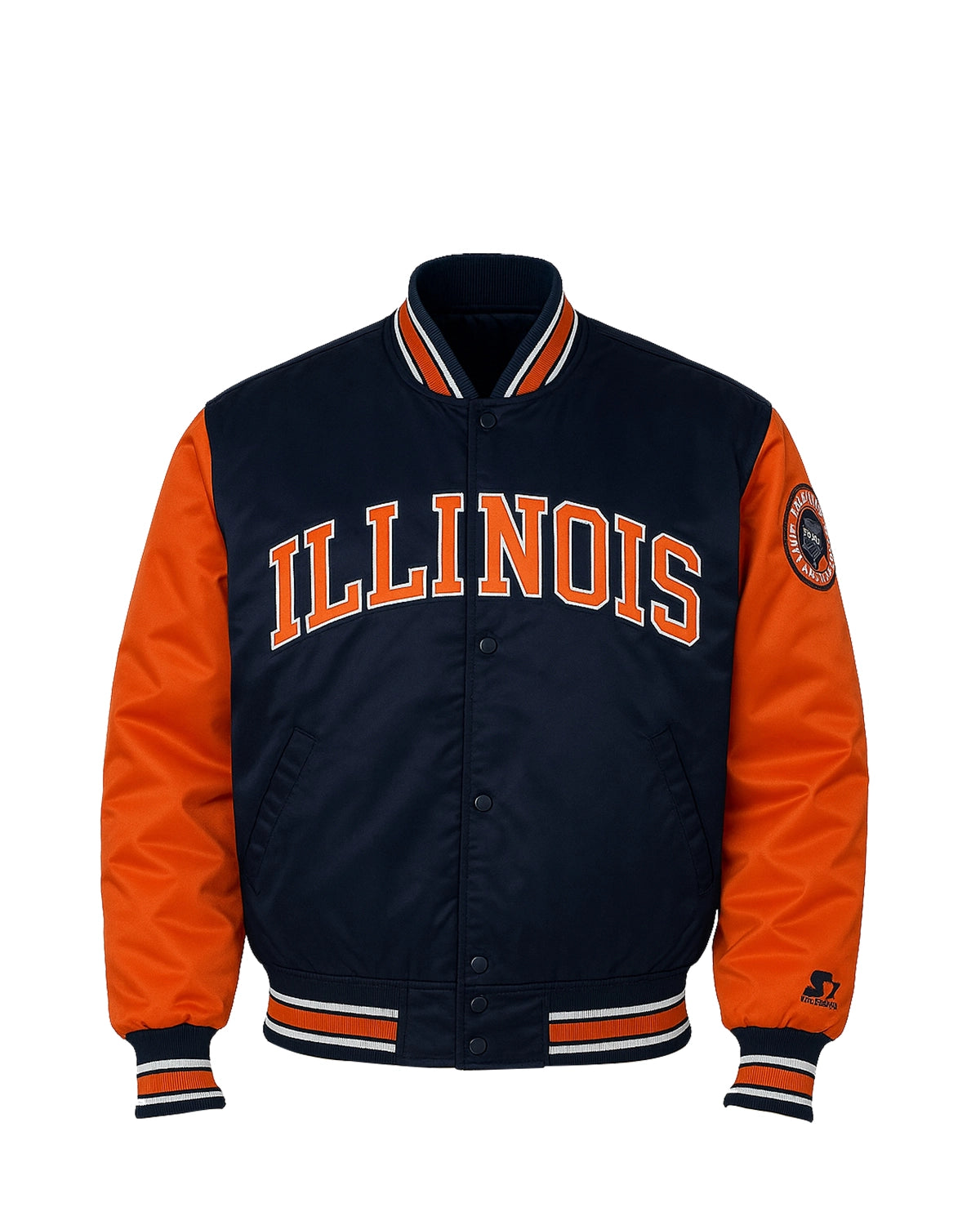 Embroidery: Fabric applique stitched Illinois lettering, Imprinted team emblem, Starter branded embroidery