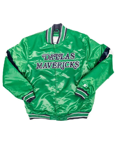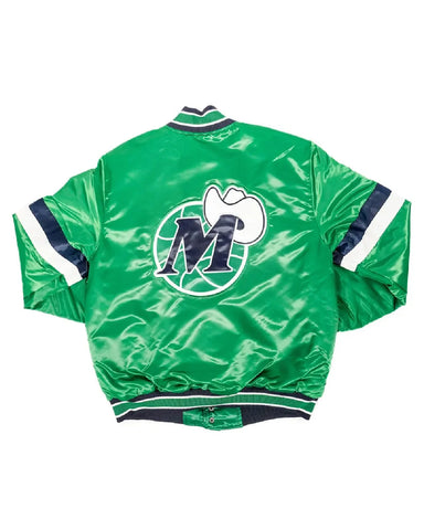 Experience superior comfort and quality with this expertly crafted Mavericks Home Game satin jacket. A soft inner lining ensures a cozy fit, while fine stitching guarantees durability. This vintage Mavericks jacket isn't just fan gear; it’s a high-quality piece of apparel that celebrates your passion. Represent the Mavericks in style with this iconic green Mavericks jacket.
