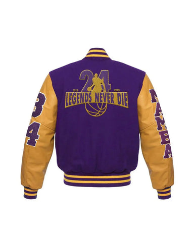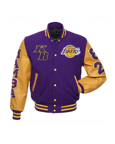 Step into the legacy of a basketball titan with our exclusive Lakers Kobe Bryant varsity jacket. This iconic jacket brilliantly celebrates the Mamba spirit, featuring a striking Yellow & Purple design that commands attention. It's the ultimate outerwear for dedicated fans, meticulously crafted to capture the essence of an undisputed basketball icon and a timeless athletic style for any occasion.