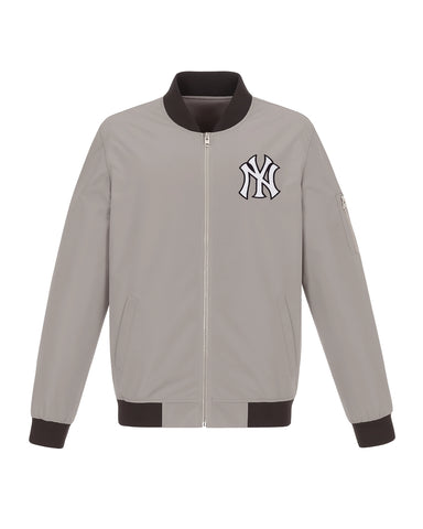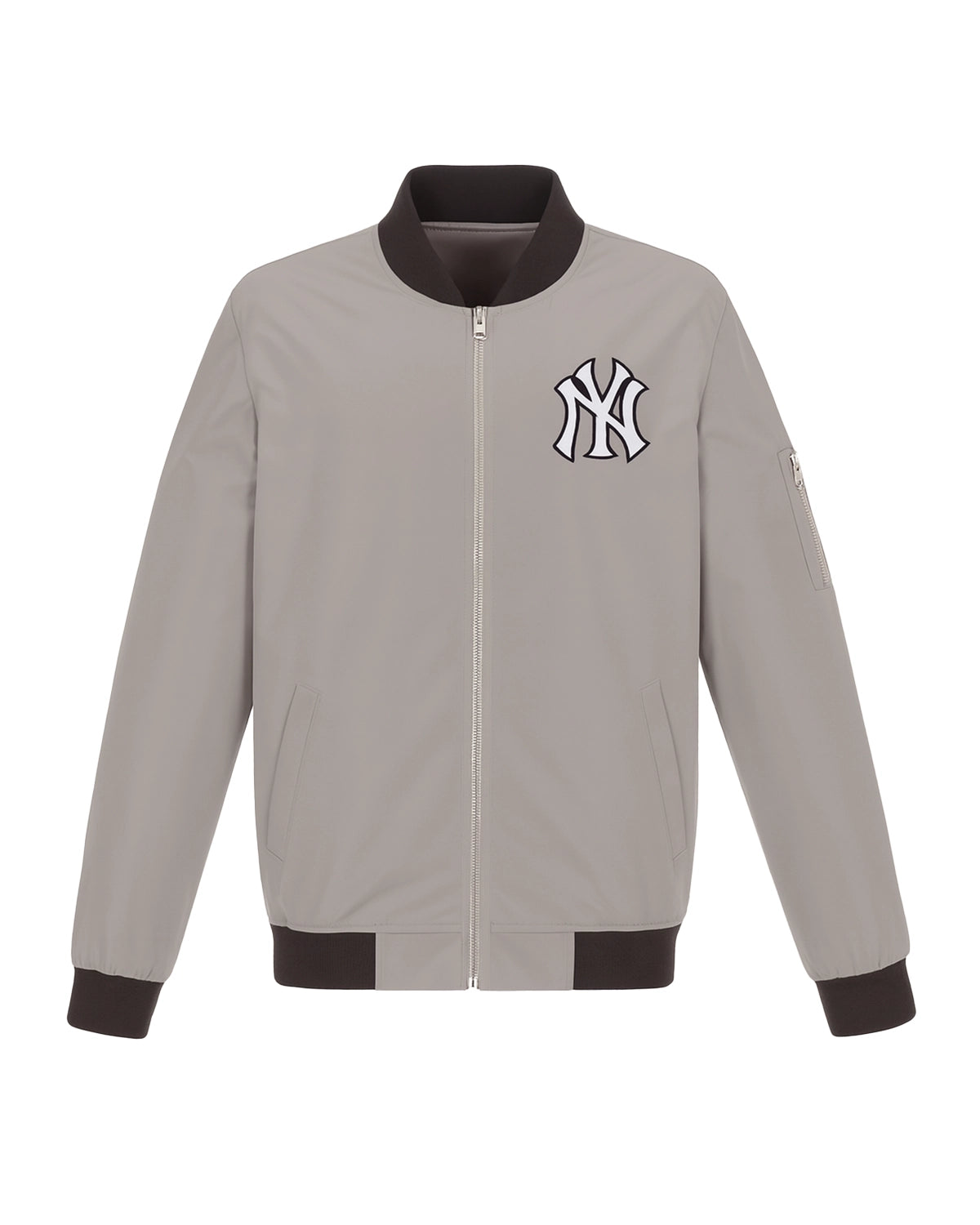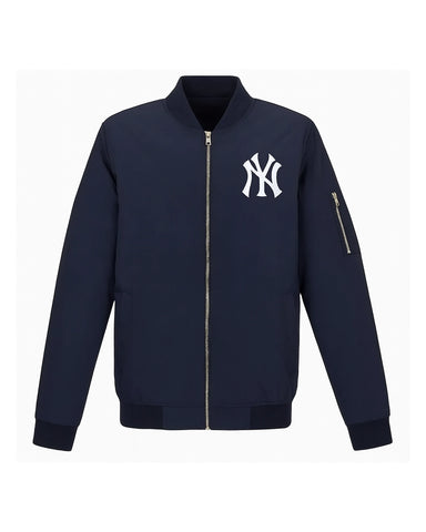 Showcase your unwavering team pride with the authentic NY Yankees Nylon Bomber Jacket. This premium men's nylon jacket boasts a sleek, modern design, perfect for game days or casual wear. Featuring a comfortable rib-knitted standup collar and a smooth full zipper closure, it effortlessly combines sporty elegance with everyday versatility, making it the ultimate NY Yankees bomber jacket for every devoted supporter.