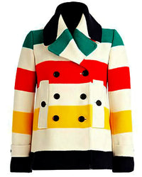 Wearing the multicolor Simcoe Hudson Bay Color Block Peacoat is like wearing a work of art