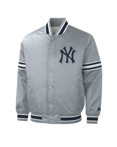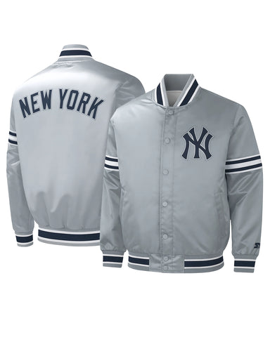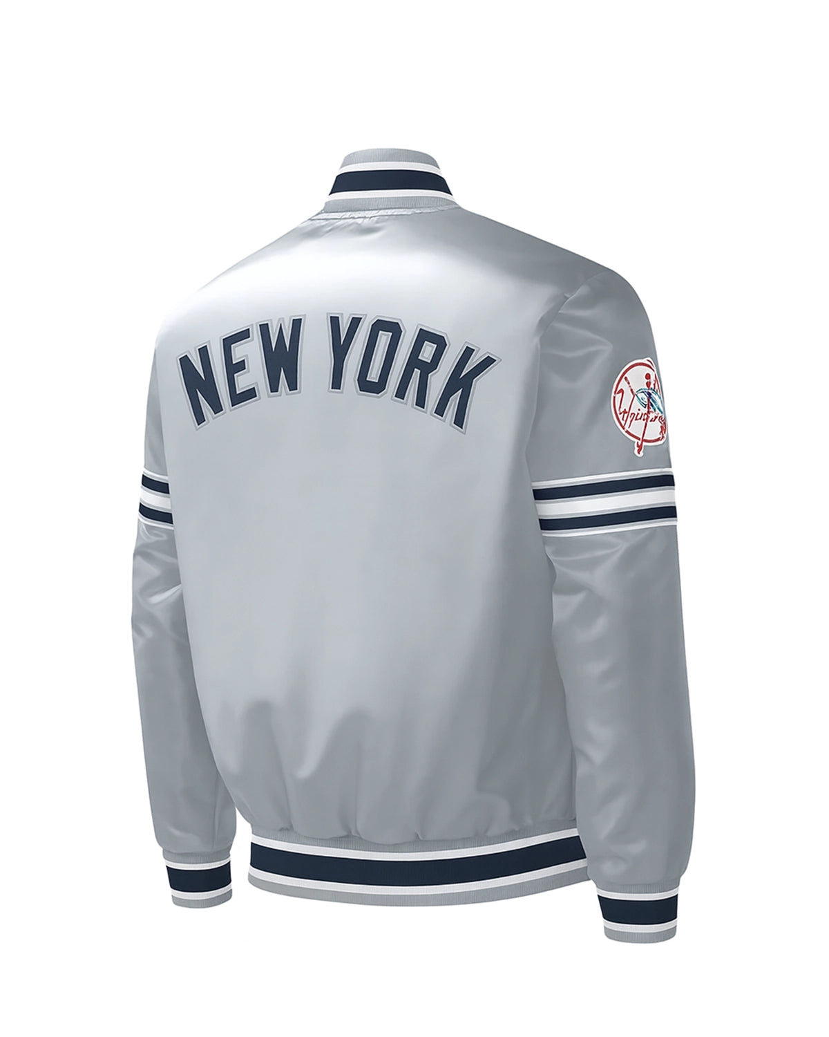 Elite Slider NY Yankees Varsity Gray Satin Jacket - XS / Gray