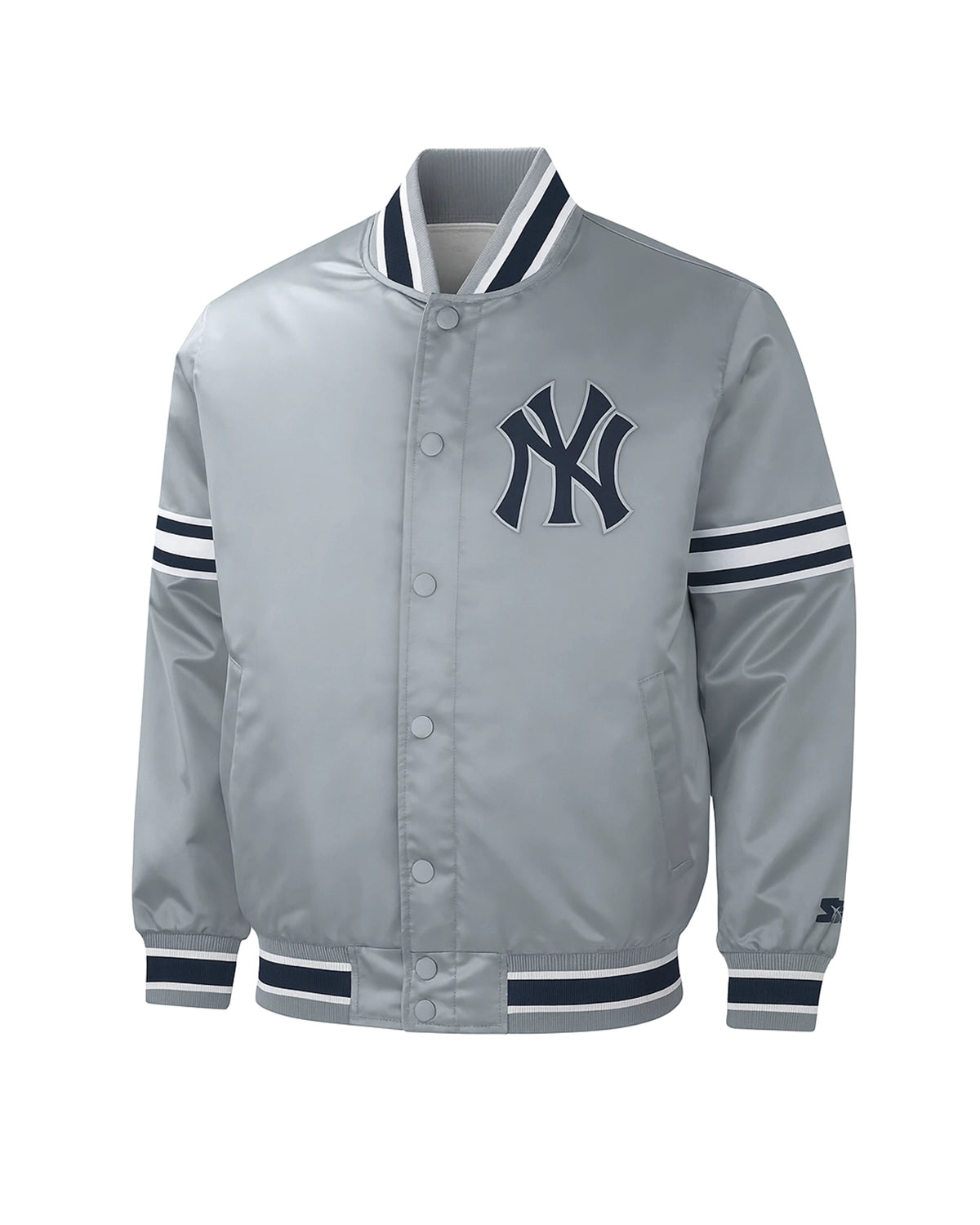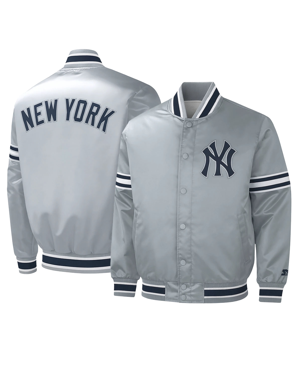 Elite Slider NY Yankees Varsity Gray Satin Jacket Sale