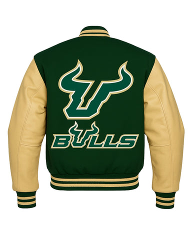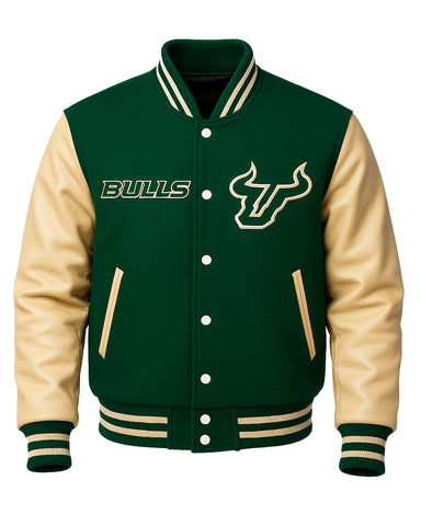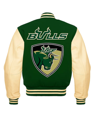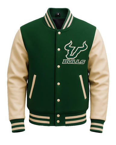 Elite South Florida Bulls Green Varsity Jacket - XS / A combo of green & beige / Style 1