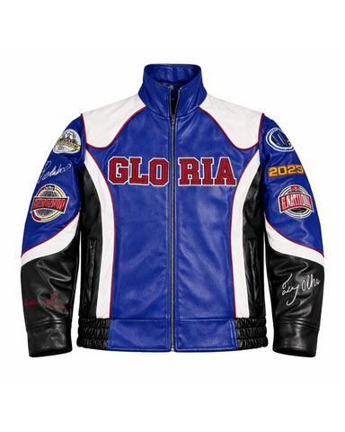 Command attention with the iconic Elite Halftime Show Gloria Leather Jacket, a stunning replica inspired directly by an unforgettable performance. Expertly crafted from high-quality genuine leather, this vibrant blue leather jacket boasts a sophisticated wide turndown collar and a smooth full zip closure. It’s designed not just for fans, but for anyone seeking a bold, celebrity-inspired fashion statement that truly stands out.