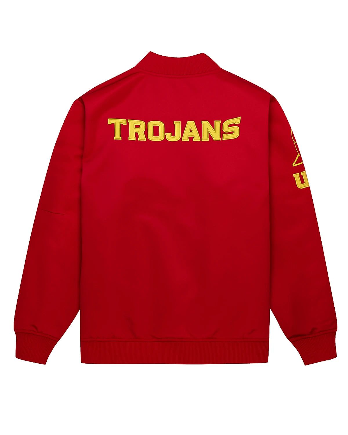Showcase your pride with the iconic team logo boldly displayed on the chest, sleeve, and back. Boasting a secure snap tab closure, rib-knitted collar, cuffs, and hem, this lightweight Trojans gear combines style with practicality. It includes two outside and one inside pocket.