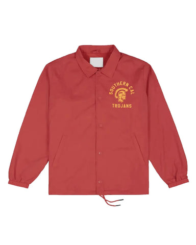 Show your Trojan pride with the ultimate USC Trojans Southern Cal Coaches jacket. Inspired by the legendary team, this piece of USC Trojans apparel features an embroidered logo and team lettering. The full snap-button front and shirt-style collar capture the authentic look of a classic Southern Cal coaches jacket. Crafted from durable polyester in a vibrant team red, it’s the perfect way to represent your team on game day or any day. This jacket is a must-have for any true fan looking for authentic style and spirit.