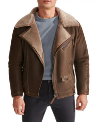 Mens Dark Brown Vintage Shearling Leather Jacket - X-Small