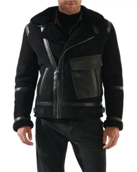 Mens Deep Black Shearling Leather Jacket - X-Small / Black