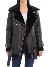 Womens Shine Black Shearling Leather Jacket - X-Small / Black