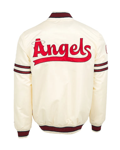 Elevate your fan game with the exquisite Angeles Angels City Connect Off White Satin Jacket. This striking off-white satin jacket blends luxurious satin with a soft viscose lining, offering unparalleled comfort and a premium feel that's perfect for any occasion. It’s the ultimate statement piece, designed to showcase your team pride with undeniable style, whether you're at the stadium or simply out and about.