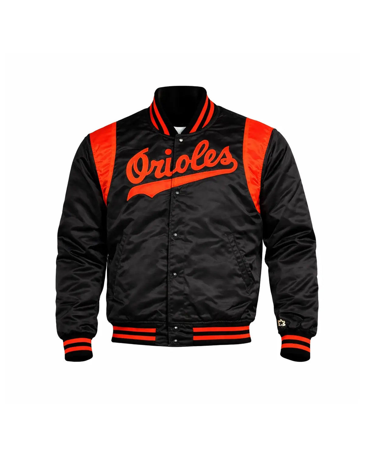 Embrace timeless style with our exclusive Baltimore Orioles 70s bomber jacket, meticulously designed for fans who appreciate history and fashion. This exceptional satin bomber jacket flawlessly captures the vibrant energy of the disco era and the legendary team, making it a standout piece for any wardrobe. Its sleek black finish and premium material ensure both a striking look and lasting quality.