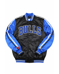 Elevate your game-day style with our elite Chicago Bulls black and blue jacket. Crafted from premium satin Bulls jacket material, it offers a luxurious feel and comfortable viscose lining. This striking jacket features a classic design, perfect for showing your team spirit at any event or casual outing.