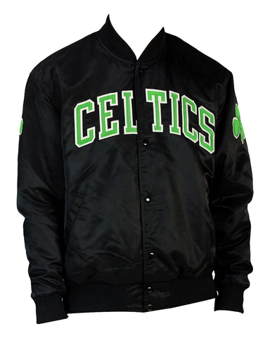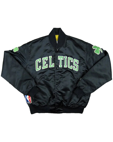 Show your team pride with the ultimate Celtics Boston Starter Black Jacket. This iconic piece of Celtics fan gear is crafted from sleek, high-quality satin, offering a timeless look perfect for any dedicated supporter. Inspired by the legendary basketball team, this stylish Boston Celtics bomber jacket effortlessly combines classic athletic style with modern street-wear comfort, making it an absolute must-have for game day celebrations or elevating your everyday casual wear.