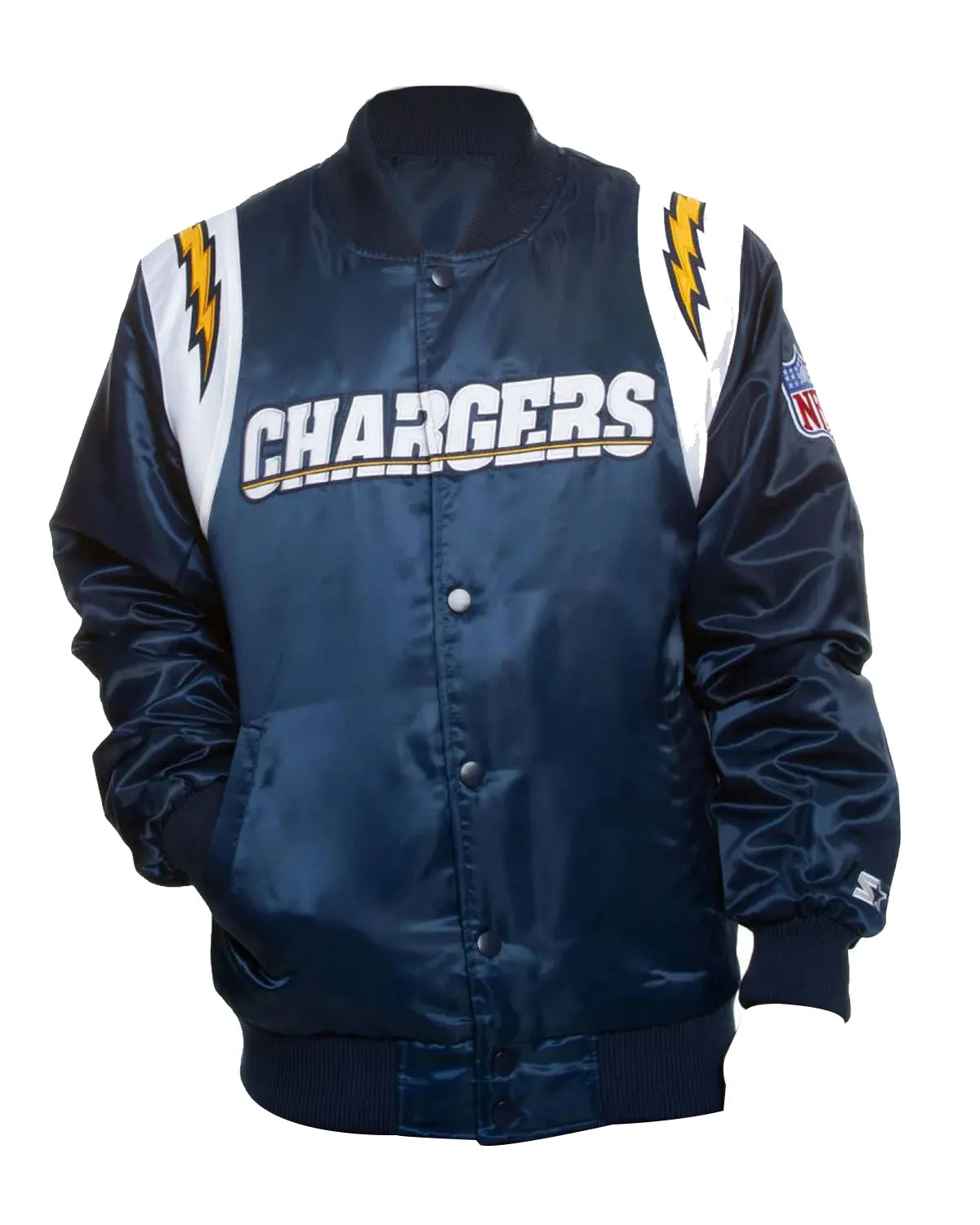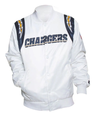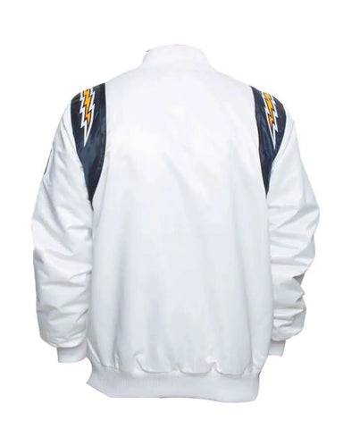 Step out in style with our elite Los Angeles Chargers Bomber Jacket. Expertly crafted from luxurious blue and white satin, this jacket is the ultimate piece of Chargers fan gear. Its smooth inner viscose lining ensures superior comfort, while the fine stitching guarantees long-lasting quality for seasons to come. This iconic jacket is designed for the dedicated fan who values both style and team spirit, making it a standout addition to any wardrobe. Feel the premium quality from the moment you put it on.