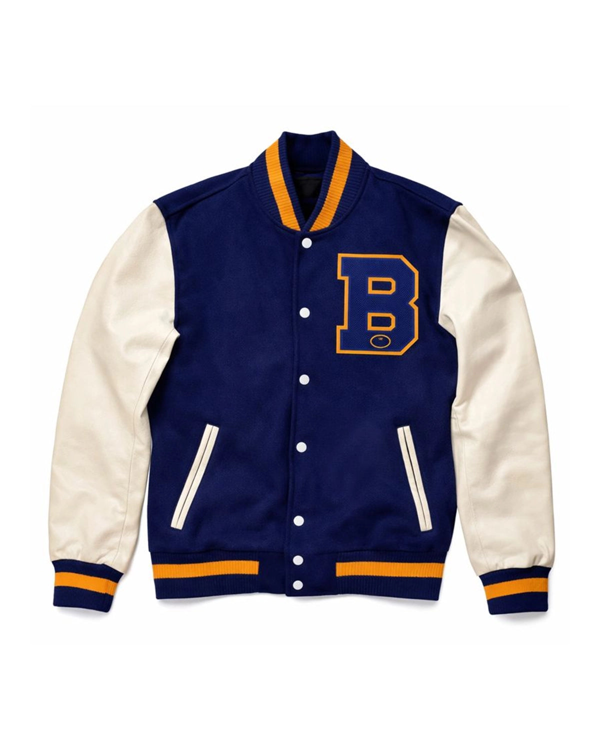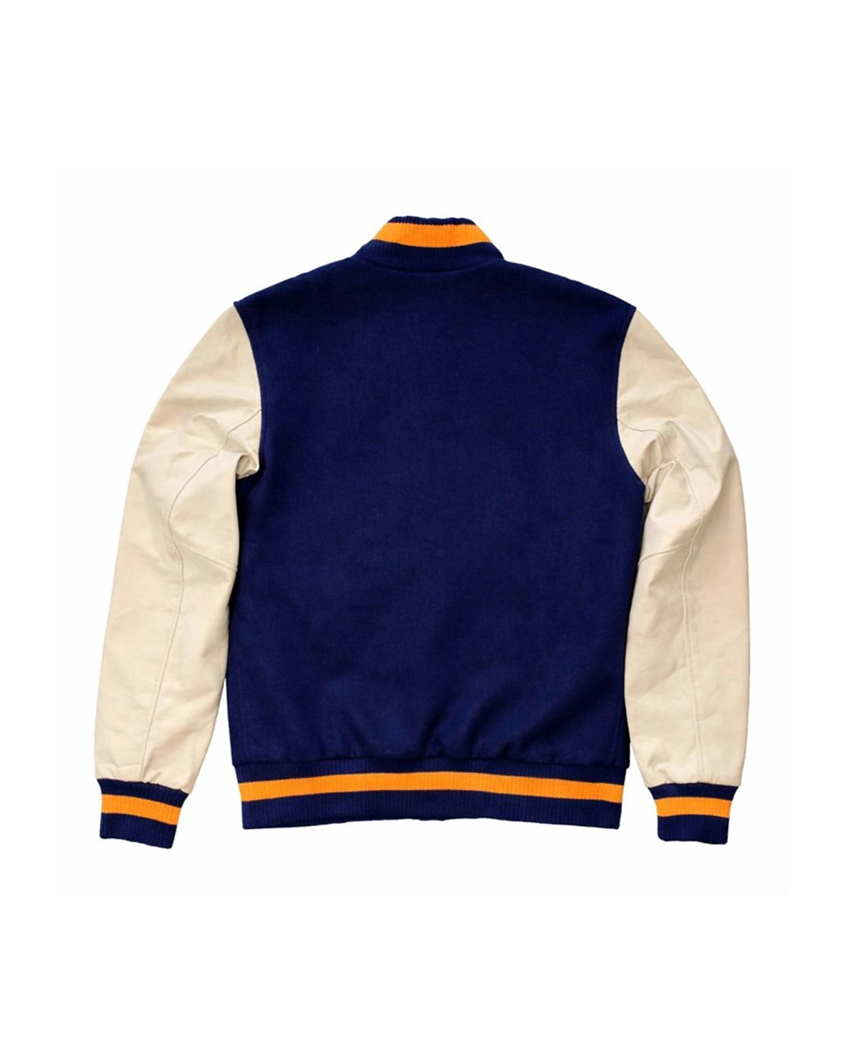 Experience unmatched comfort with the soft viscose inner lining, while rib-knitted cuffs and collar add authentic detail and warmth. This versatile blue and white varsity jacket features two practical side waist pockets for your essentials. Elevate your wardrobe with this stylish wool and leather jacket, a truly captivating piece of movie inspired outerwear that stands out.