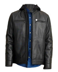 Elite Men’s Black Leather Jacket with Removable Hood - XS