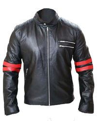 Elite Men's Black Cafe Racer Red Strip Lambskin Leather Jacket - XS / Black
