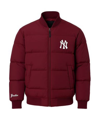 Designed for both warmth and versatility, this NY Yankees puffer jacket features a cozy soft viscose lining and a comfortable rib-knit erect collar, cuffs, and waistline. With two convenient front welt pockets and two inner pockets, it offers ample storage. This finely stitched warm baseball jacket is the ultimate MLB fan apparel for showcasing your loyalty in comfort and modern style.