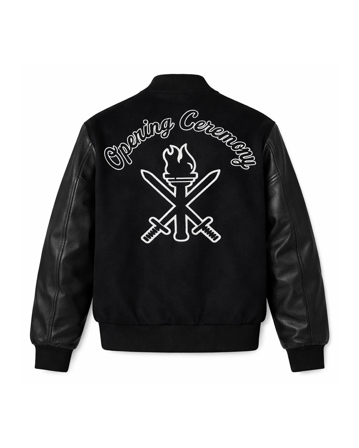 Step out in iconic style with the Elite OC black varsity jacket, meticulously inspired by the Opening Ceremony. Crafted from premium wool and genuine cow-hide leather, this durable jacket ensures superior comfort and timeless appeal. Designed for both men and women, it's a versatile addition to any wardrobe, promising effortless sophistication and a standout look.