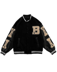 Elite Skeleton Bad To The Bone Patchwork Wool/Leather Varsity Jacket - XS / Black