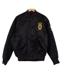 Embrace classic American workwear style with our elite Teamster Bomber Jacket. Inspired by a rich heritage, this piece is crafted from premium black satin for a sleek, modern look. The smooth satin finish jacket feels luxurious while the soft viscose lining ensures all-day comfort. Its iconic design and superior materials make it a standout addition to any wardrobe, a true statement of durable style and timeless appeal.