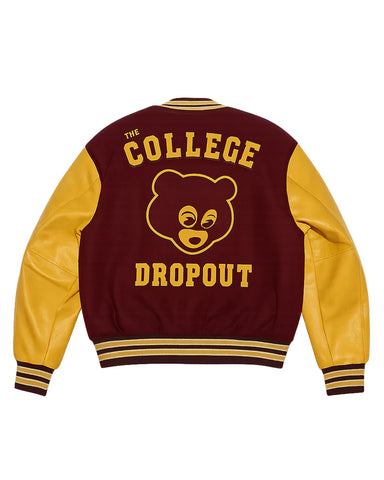Channel iconic hip hop style with the College Dropout Kanye West Jacket, inspired by his legendary The College Dropout' album. This premium Kanye West varsity jacket is crafted from a high-quality wool body and genuine leather sleeves, offering both warmth and timeless appeal. It's the ultimate piece of celebrity inspired outerwear for fans and fashion enthusiasts alike, capturing a pivotal moment in music history with authentic, vintage-inspired design and superior craftsmanship.