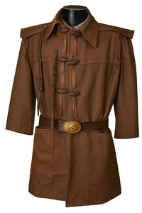 Channel the rugged spirit of the Wild West with this iconic The Outlaw Josey Wales Clint Eastwood Coat. Inspired by the legendary film, this piece captures the authentic look of the famous character. Crafted from premium brown cotton with a soft viscose lining, it offers both screen-accurate style and exceptional comfort. The fine-quality stitching and padded shoulders with braided drawstrings ensure this coat is a durable and faithful replica, perfect for fans and collectors seeking a timeless piece of cinema history.