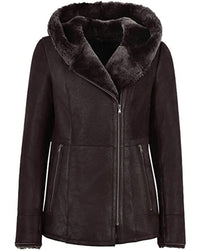 Elite Women's Hooded Fur Shearling Long Jacket - Dark Berry / XS