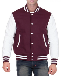 Absolutely love my Mens Maroon and White Varsity Jacket from Elite Jacket! The combination of maroon and white is so stylish, and the wool+leather material feels premium. The rib knit cuffs and collar add a nice touch. Highly recommended