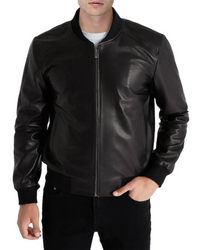 Mens Slimfit Black Bomber Leather Jacket - X-Small / Black