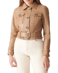 Womens Authentic TAN Biker Leather Jacket - X-Small