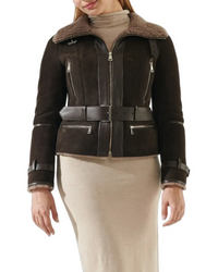 Womens Choco Brown Shearling Leather Jacket - X-Small / Dark Brown