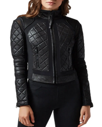 Womens Quilted Classic Black Biker Leather Jacket - X-Small / Black