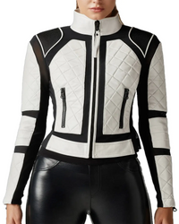 Womens White and Black Biker Leather Jacket - X-Small / White and Black